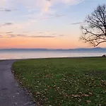 A tóra néző terasszal rendelkező 1 hálószobás Peaceful Tiny House Near Forest Rorschacherberg villa 15 perces autóútra fekszik a St. Gallen-Altenrhein repülőtértől.
